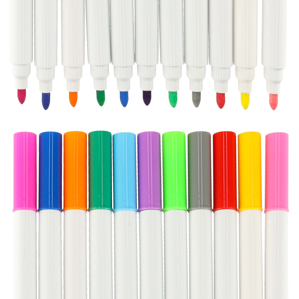 Komplektis on valged markerid värviliste korkidega lihtsaks eristamiseks – kohe kasutusvalmis.
