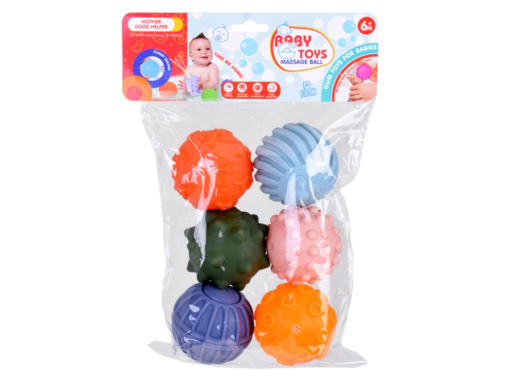 Igal kuuest pallist on erinev kuju ja tekstuur ning mitmesugused nupsud stimuleerivad kompimismeelt ja toetavad meeleelundite retseptorite arengut. See aitab parandada laste koordinatsiooni ja taktiilseid oskusi.