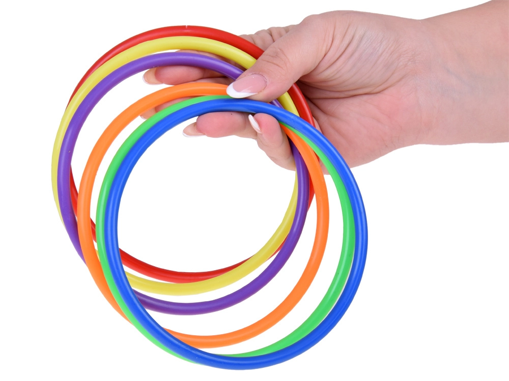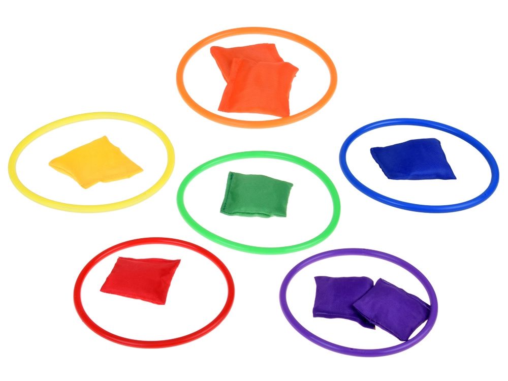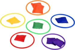 See mängukomplekt sobib ideaalselt lastele, kes armastavad aktiivselt aega veeta. Komplektis on kuus värvilist koonust, kaksteist tekstiilist kotikest ja kaksteist plastist rõngast, mis võimaldavad mitmesuguseid mänge. Lapsed saavad parandada oma koordinatsiooni ja täpsust viskamise ning sihtimise abil.