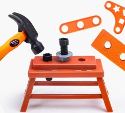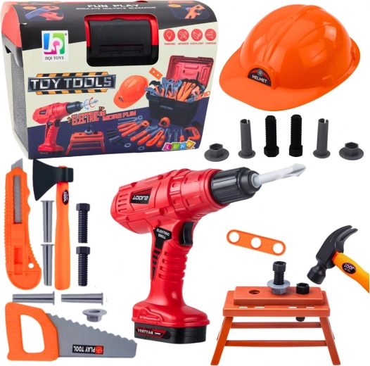 Laste tööriistakomplekt võimaldab väikestel meistritel turvaliselt mängida tööriistadega, mis näevad välja nagu päris. Patareitoitel elektriline kruvikeeraja/puur vahetatavate otsikutega – lame, rist ja puurimisotsik. Lisaks kuuluvad komplekti ka töölaua pink ja kaitsekiiver, mis lisavad mängule veelgi rohkem realismi.
