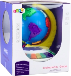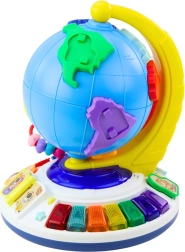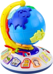 Interaktiivsel gloobusil on pinnal 7 värvilist plokki, mis esindavad mandreid ja on illustreeritud sõbralike loomakujutistega. Õige koha leidmisel kuuleb laps mandri ja looma nime ning realistlikku heli, mis on suurepärane viis geograafia õppimiseks.