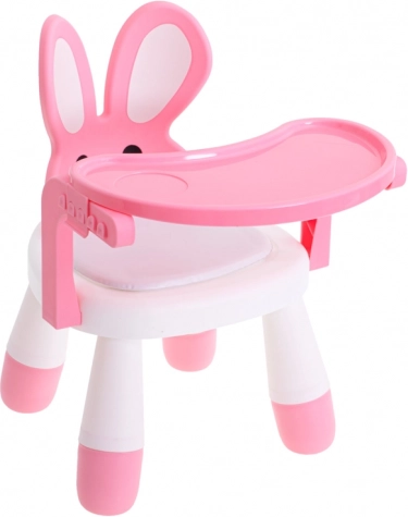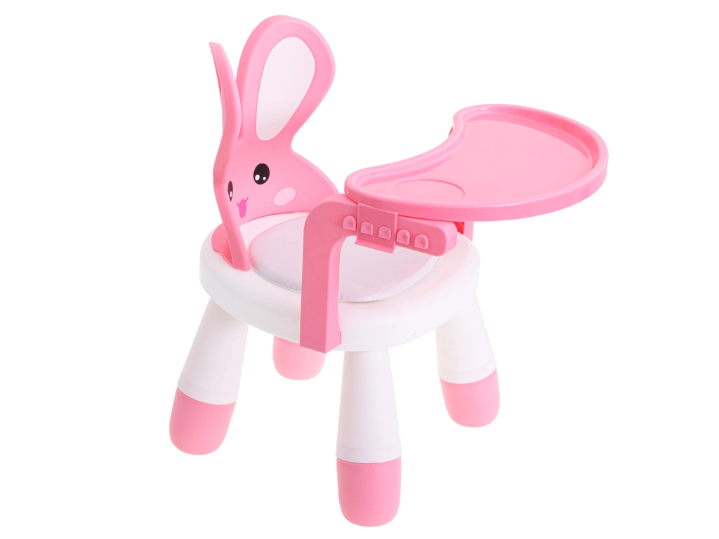 See multifunktsionaalne jänkumustriga tool muudab iga toidukorra ja mängu meeldivaks rutiiniks. Eemaldatav roosa lauake sobib toitmiseks, joonistamiseks ja klotside ladumiseks, samal ajal kui kõrvadega ergonoomiline seljatugi toetab õiget ja mugavat istumist.
