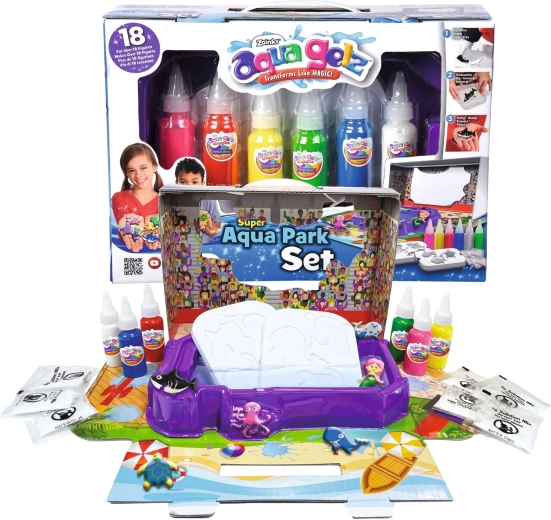 Aqua Parki komplekt avaneb värvikaks veepargiks mängustseeniga. Tänu lihtsale doseerimisele pudelitest ja taaskasutatavatele vormidele on meisterdamine lihtne, puhas ja köitev – ideaalne nii koduseks tegevuseks kui ka vahvaks kingituseks.