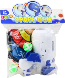 Kosmoselaeva kujuline püstol on valmistatud vastupidavast materjalist ning võimaldab vedrumehhanismi hõlpsalt pingutada täpseks laskmiseks. Kuus kaasasolevat takjakinnitusega palli kinnituvad kergesti sihtmärgile, mis lihtsustab punktide arvestamist. Kiirpaigaldatav konks seinale, uksele või tahvlile riputamiseks ning mugav kilespakend võimaldavad lihtsat hoiustamist ja transporti.