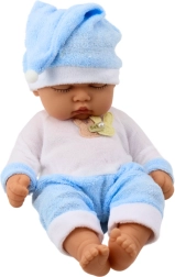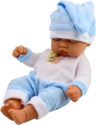 Nuku kompaktne suurus on umbes 24 × 12 cm, mistõttu sobib see hästi väikestele kätele. Pehme materjaliga sinine pidžaama on täiendatud armsa tutiga mütsikesega. Väike luttimotiiviga trükk särgil lisab nukule õrna, lapselikku võlu.