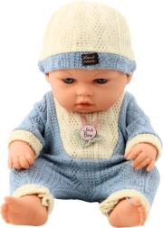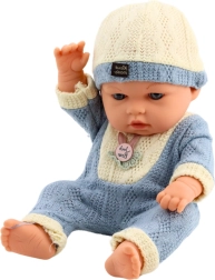 Nuku mõõdud on ligikaudu 29 × 15 cm, mis teeb selle piisavalt suureks, et jätta mulje, kuid samas kergeks ja hõlpsasti käsitsetavaks – ideaalne väikestesse kätessse ning mahub kergesti enamiku laste kärude ja voodikeste sisse. Nukk on riietatud pehmesse kootud komplekti heleda kreemi ja pastelsinise toonides, mida kaunistab väike embleem.