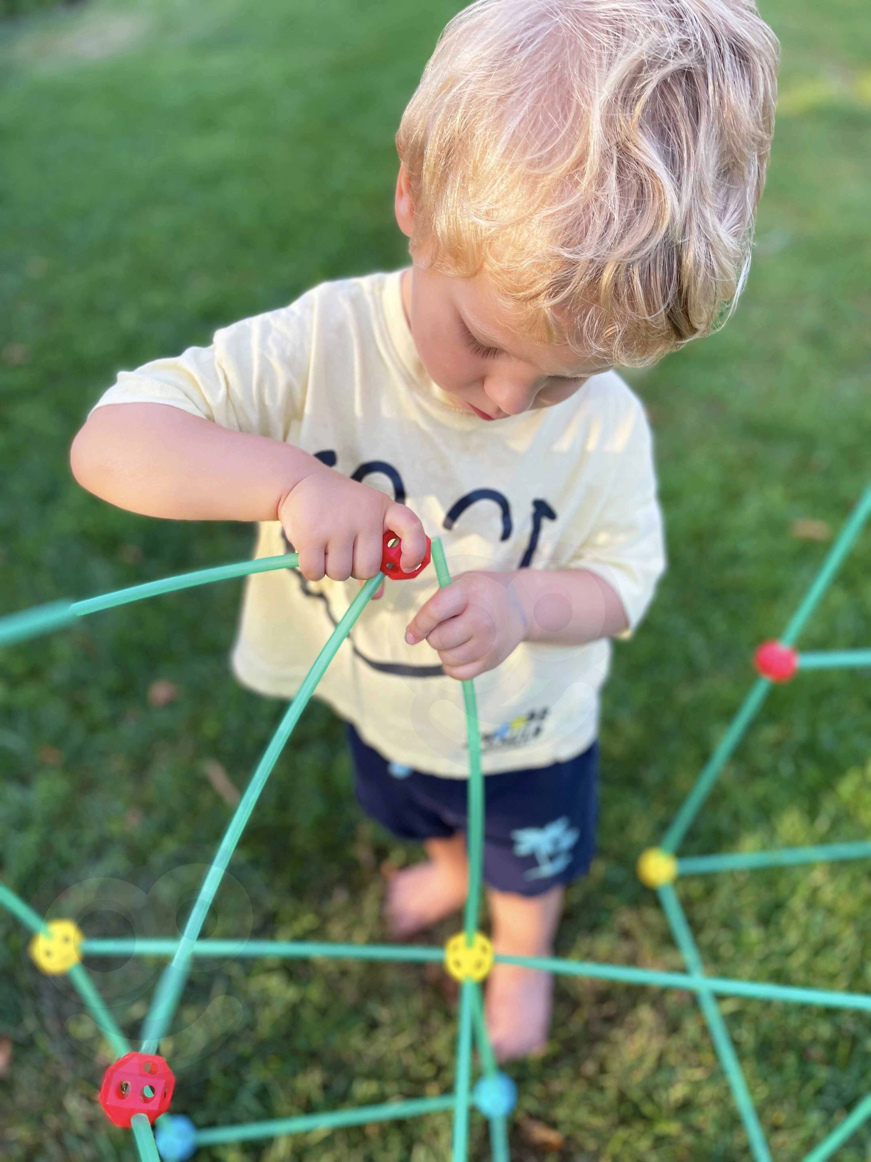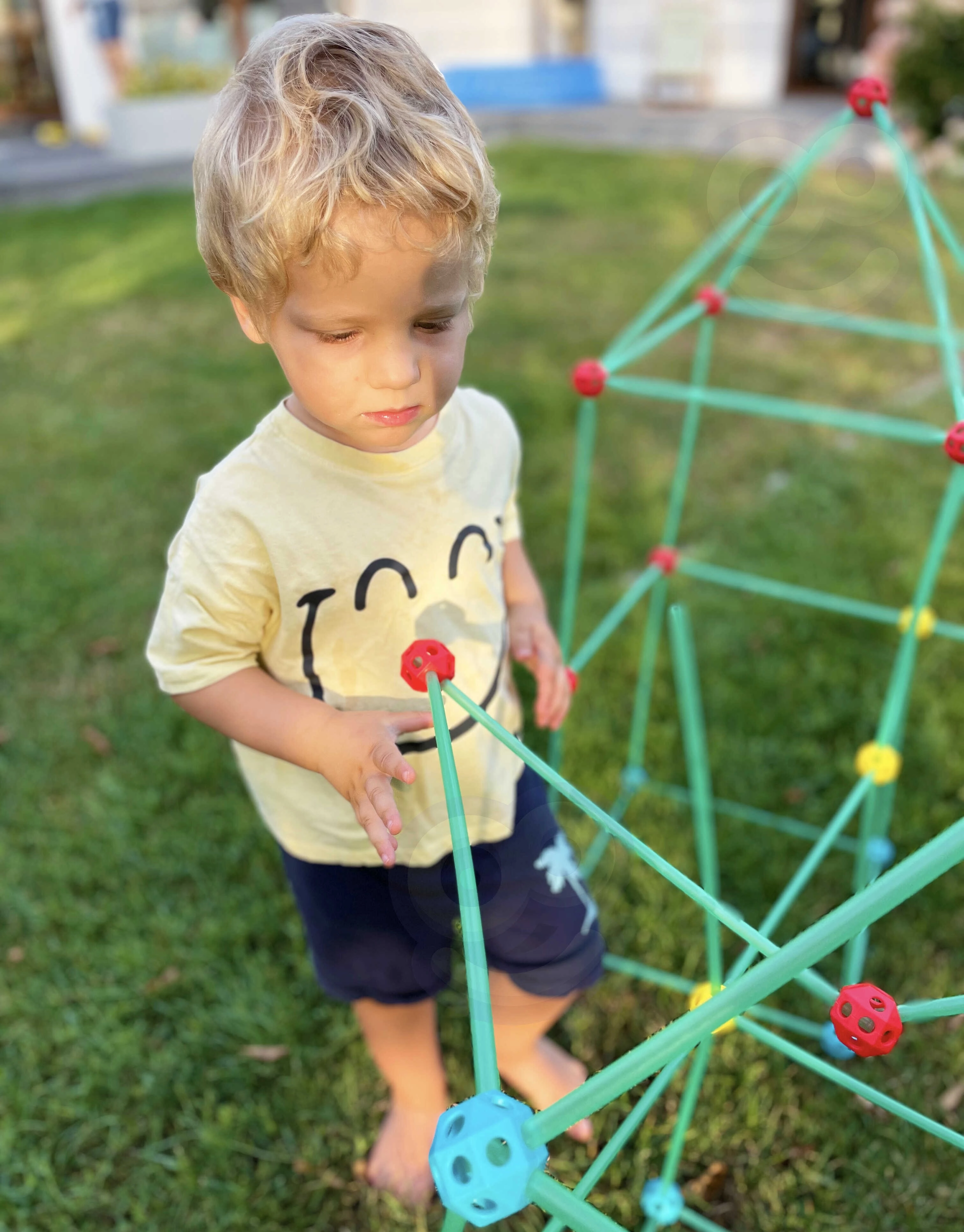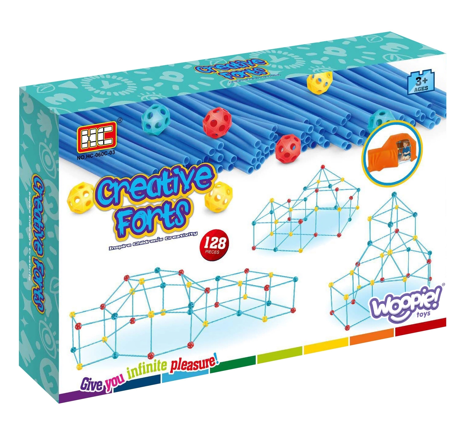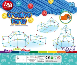 Komplekt on ideaalne sinu lapse loovate oskuste arendamiseks. See sisaldab kokku 128 elementi, mis võimaldavad ehitada erinevaid ruumilisi konstruktsioone, sh telki.