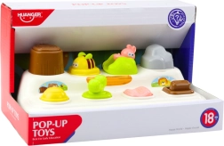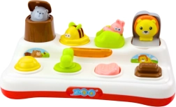 Mänguasja pinnal on erinevad elemendid: lüliti, pöördnupp, liugur ja nupud – igaüks neist aktiveerib teise akna, millest “hüpib välja” armas loomake. Pop-Up mehhanism toob lastele palju rõõmu ning õpetab ühtlasi mõistma põhjus-tagajärg seost – laps näeb, et tehtud tegevus tekitab kindla reaktsiooni.