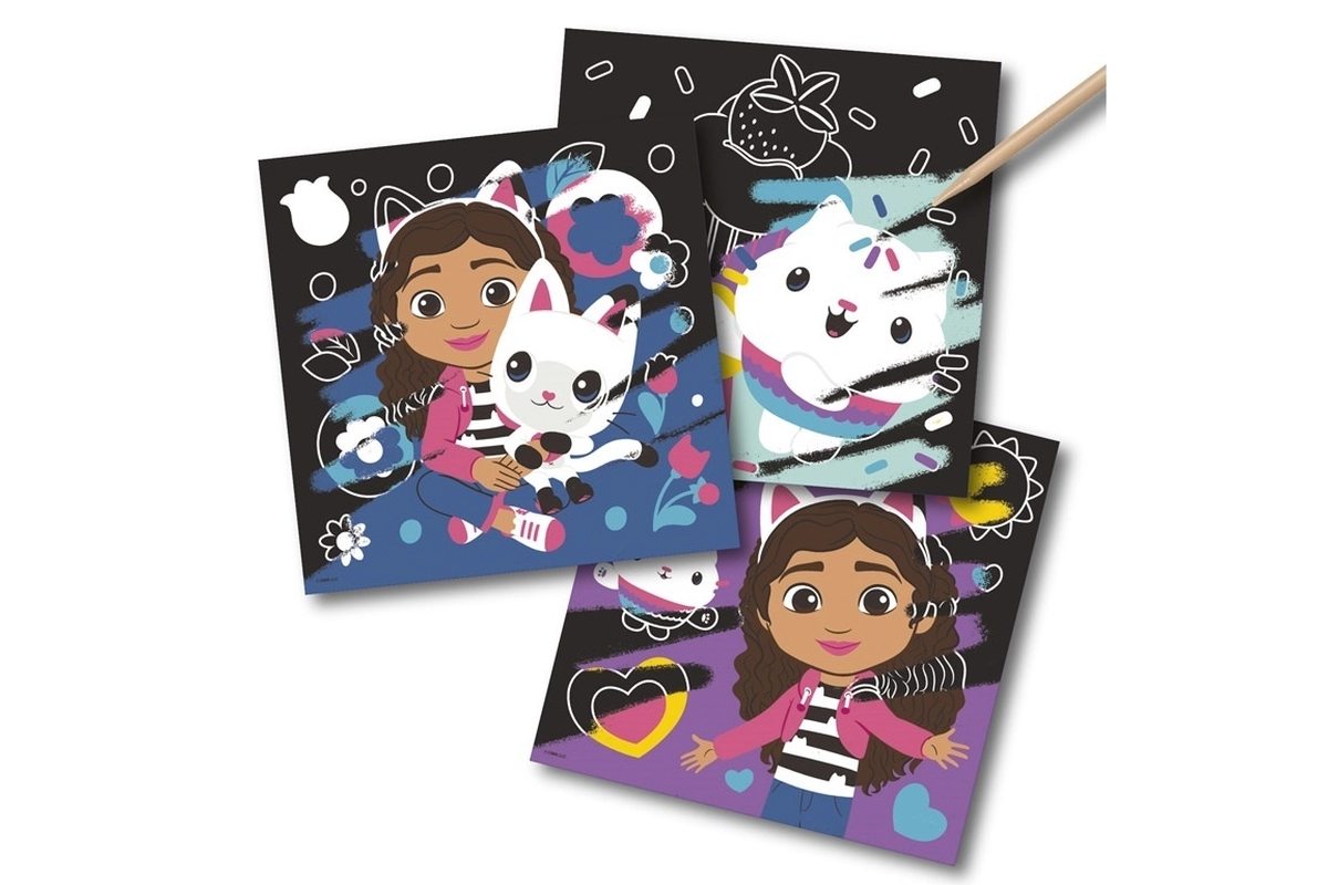 Naudi palju lõbu loovate kraapimispiltidega, mis on inspireeritud Gabi võlumaailma majakesest. Spetsiaalse pliiatsiga saad paljastada värvilised motiivid, mis peituvad musta kihi all, ning äratada ellu lemmiktegelased. Ideaalne kingitus väikestele kunstnikele ja kõigile Gabi fännidele.