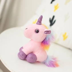 See lummav plüüdsest ükssarvik on originaalne aksessuaar seljakotile, käekotile, võtmetele või pinalile. Valmistatud pehmest roosast plüüsist säravate lillade detailidega, tal on pehme lakk ja saba vikerkaarevärvides ning särav sarv. See mini-ükssarvik võlub nii lapsi kui täiskasvanuid.