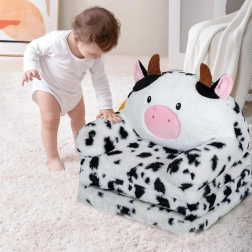 Võluv disain mustvalgete laikude, sõbraliku näo, roosa nina, turritavate kõrvade ja pehmete sarvedega köidab laste tähelepanu ning toob interjööri rõõmsa ja hubase meeleolu. Lehmamuster sobitub suurepäraselt lastetoa sisustusega ja on selle funktsionaalne täiendus.