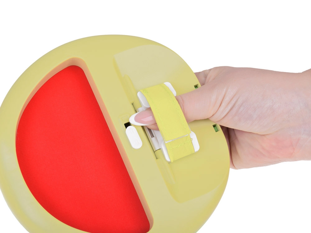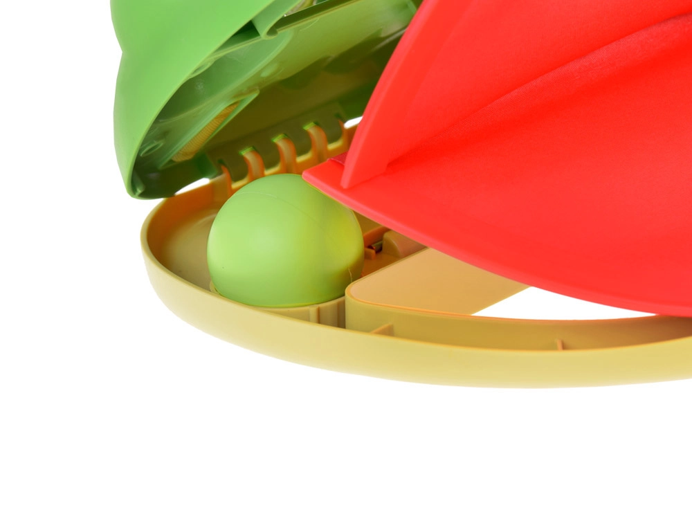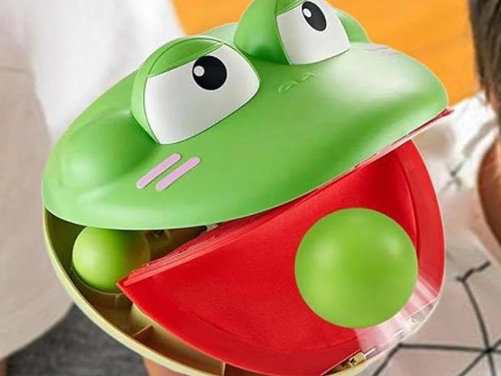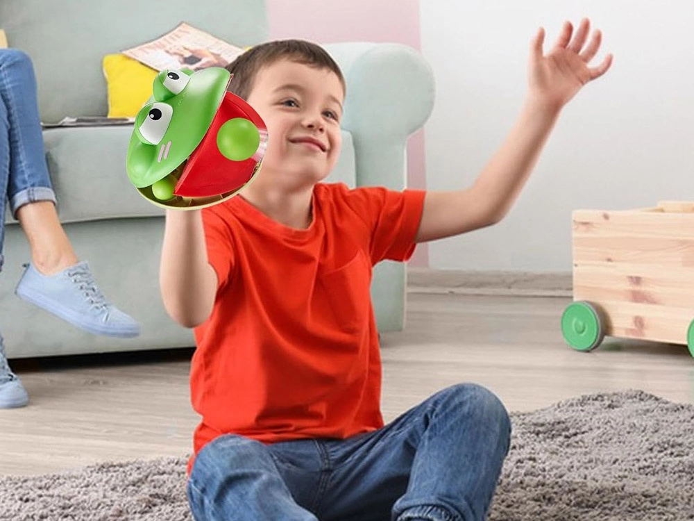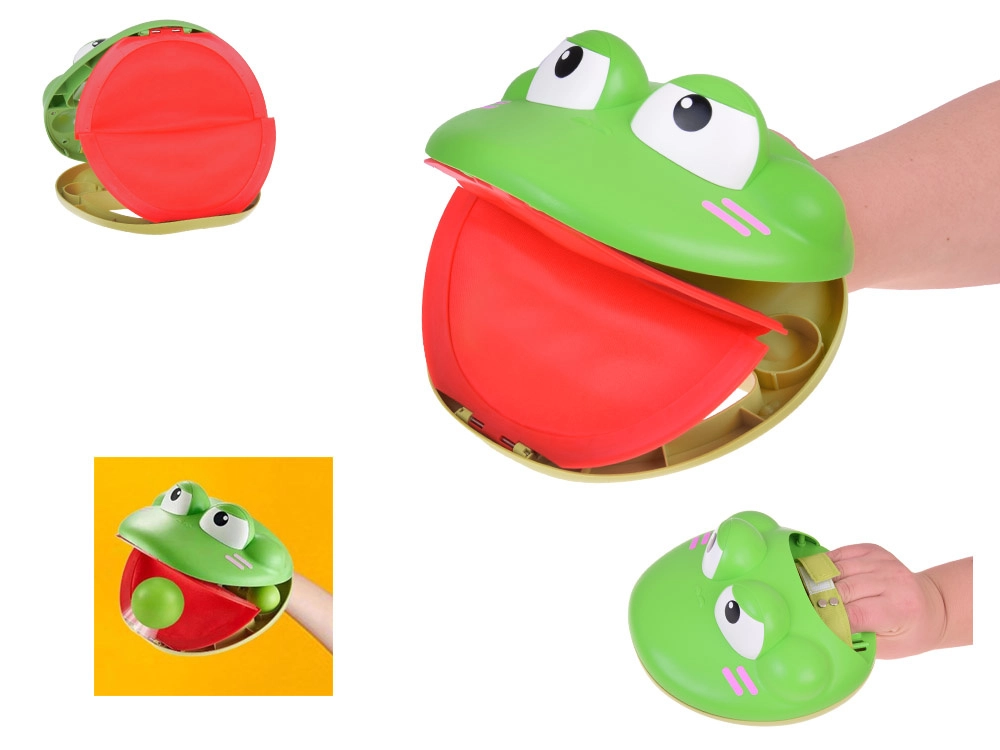 - Katapulti küljel on valge tõmblukk – libistage seda, et avada konna suu ja sisestada pall.