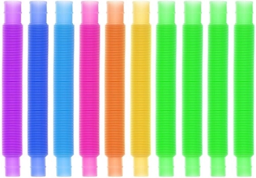 See 10 sensoorse toru komplekt on loodud pakkuma puudutus- ja kuulmisstimulatsiooni. Torud on saadaval 7 erinevas värvitoonis – kollane, roosa, lilla, oranž, sinine, tumesinine ja roheline – ning sobivad suurepäraselt õppe-mängudeks, nagu tähtede õppimine, loendamine jm. Torude ühendamisvõime võimaldab luua erinevaid kujundeid, näiteks ringe ja ruute, mis toetab laste loovust ja pakub tundideks tegevust. Täiskasvanutele on need suurepärane vahend stressi leevendamiseks.