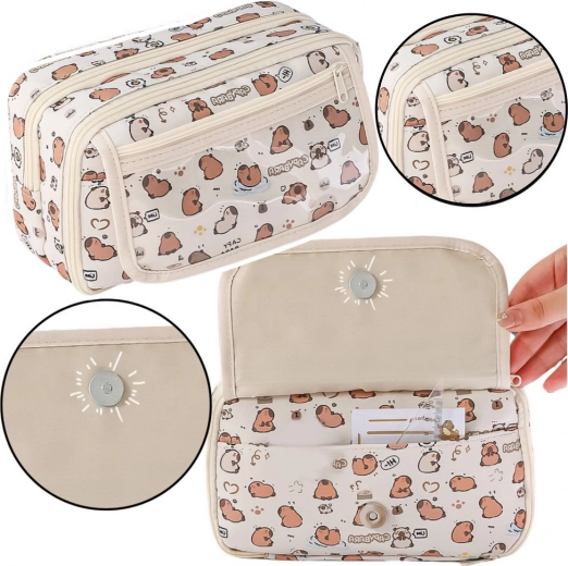 Suur ja funktsionaalne kapübaarade motiiviga pinal on ideaalne õpilastele, kes peavad lugu praktilisusest ja nunnust välimusest. Kreemikas toonis, sümpaatsete kapübaarade trükiga pinal paistab silma teiste koolitarvete seas. Sobib kooli, ülikooli, kunstitundidesse või kodusesse kontorisse.
