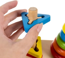 Tutvuge kolme põhikujundiga: ring, kolmnurk ja ristkülik. Mänguasi sisaldab alust ja hulka tükke, millega on lihtne toimetada ja mida saab hõlpsasti kokku laduda.