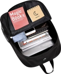 Elegantne must seljakott vastupidavast Oxford‑kangast on veekindel ning tänu polsterdatud seljaosale ja MESH‑võrguga õlarihmadele mugav kanda kogu päeva. Helendav reflekttrükk parandab nähtavust hämaras ja pimedas, muutes selle suurepäraseks valikuks kooli, linna ja väljasõitudeks.