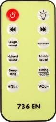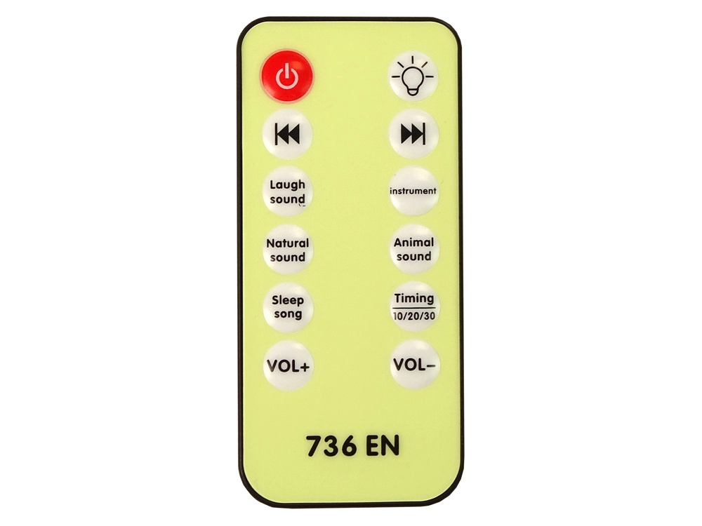Juhtimine toimub kaugjuhtimispuldiga, millega saab reguleerida valgust, helitugevust ja helisid. Funktsioonid hõlmavad: