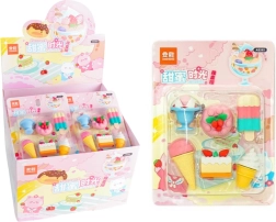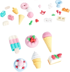 Selles atraktiivses komplektis leiad kummikustutid, mis meenutavad jäätist, küpsiseid, magustoite ja muffineid – igaüks neist on hoolikalt detailne ja särab erksate värvidega.