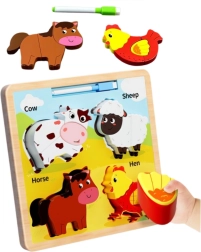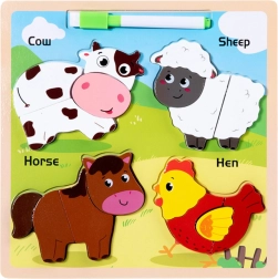 See puidust hariv pusle sisaldab laste seas tuntud loomi, nagu lehm, lammas, hobune ja kana. Iga loom koosneb mitmest tükist, mis tuleb sobitada õigesse kohta, toetades peenmotoorika ja loogilise mõtlemise arengut.