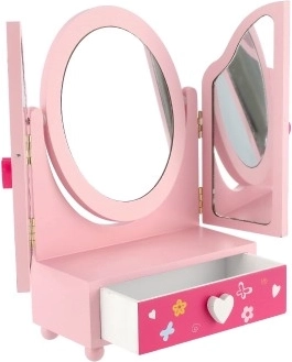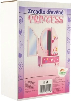 Puidust tualettpeegel ehtesaaliga Princess on suurepärane lisa lastetuppa. Keskmist ovaalset peeglit täiendavad kaks külgpaneeli mugavaks nurga seadistamiseks. Alumises osas on praktiline sahtel, kuhu lapsed saavad oma väikesed aarded paigutada. Õrn kaunistus haldjate, lillede ja südametega toetab fantaasiat ja mängurõõmu.