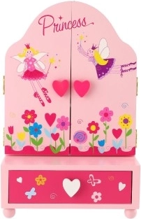 Sõrmused, käevõrud ja helmed leiavad koha praktilises alumises sahtlis armsate südame- ja lillemotiividega.