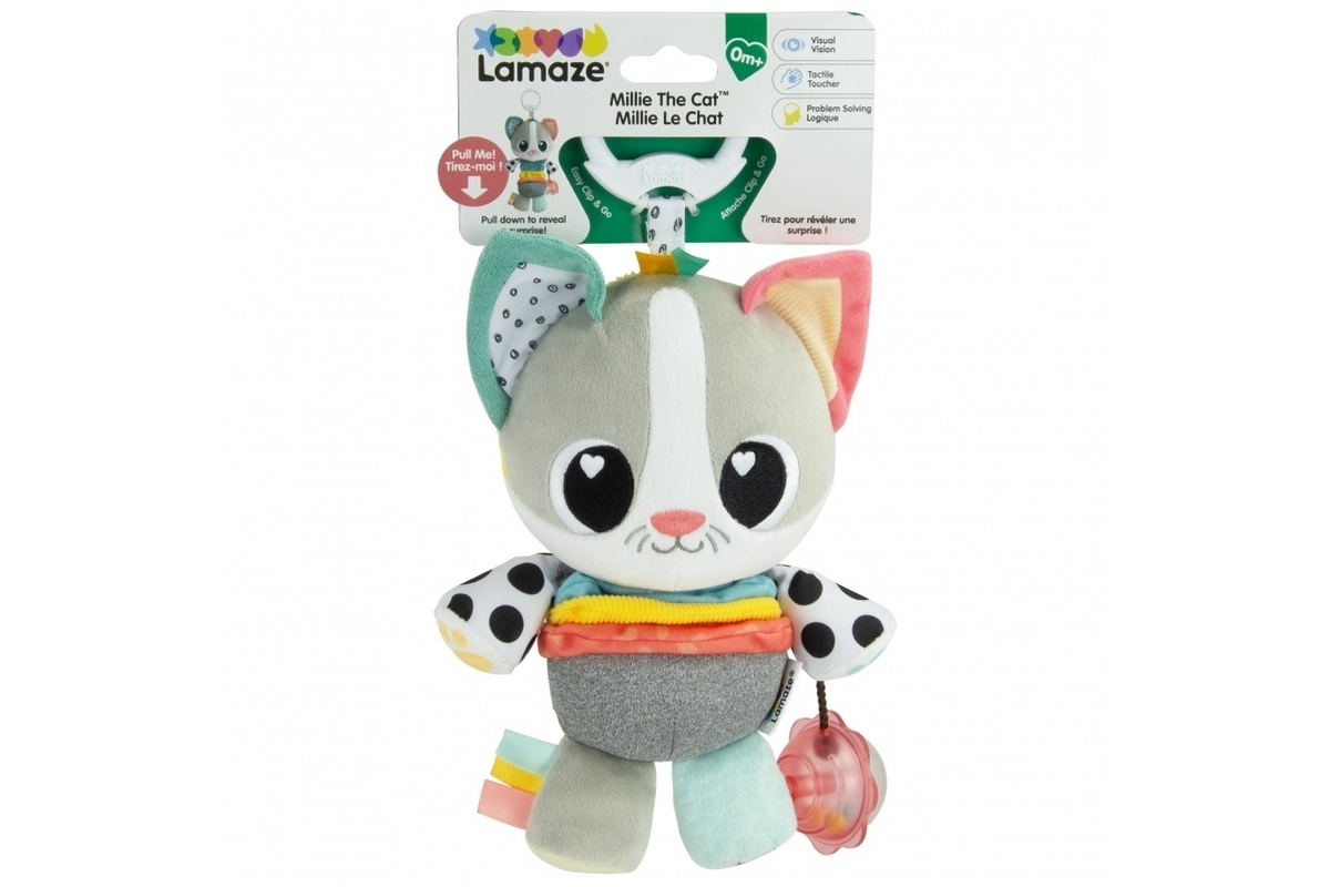 Tutvustame teile maagilist mänguasja Lamaze – Kass Millie, mis toetab beebi arengut ning köidab oma armsa disaini ja lõbusate funktsioonidega.