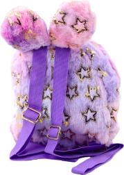 Seljakott on valmistatud pehmest plüüsist, millesse on põimitud sädelevad, kuldse tooniga tähekesed. Ül alt välja ulatuvad kõrvakesed lisavad muinasjutulist sarmi ning kogu pastelse värvigamma on lastele sõbralik. Seljakotil on üks peamine tõmblukuga tasku ja ees väiksem tasku, ideaalne pisividinate jaoks.