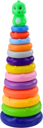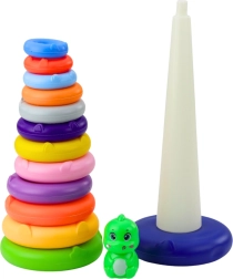 See mänguasi koosneb tugevast ja stabiilsest alusest, kõrgest vardast ning 13 eri suuruses värvilisest rõngast. Kõik elemendid on valmistatud kergest ja vastupidavast plastist, mis on väikestele lastele ohutu. Torni ülaosa kaunistab armas dinosauruse figuur, mis köidab laste tähelepanu ja julgustab edasiseks mänguks.