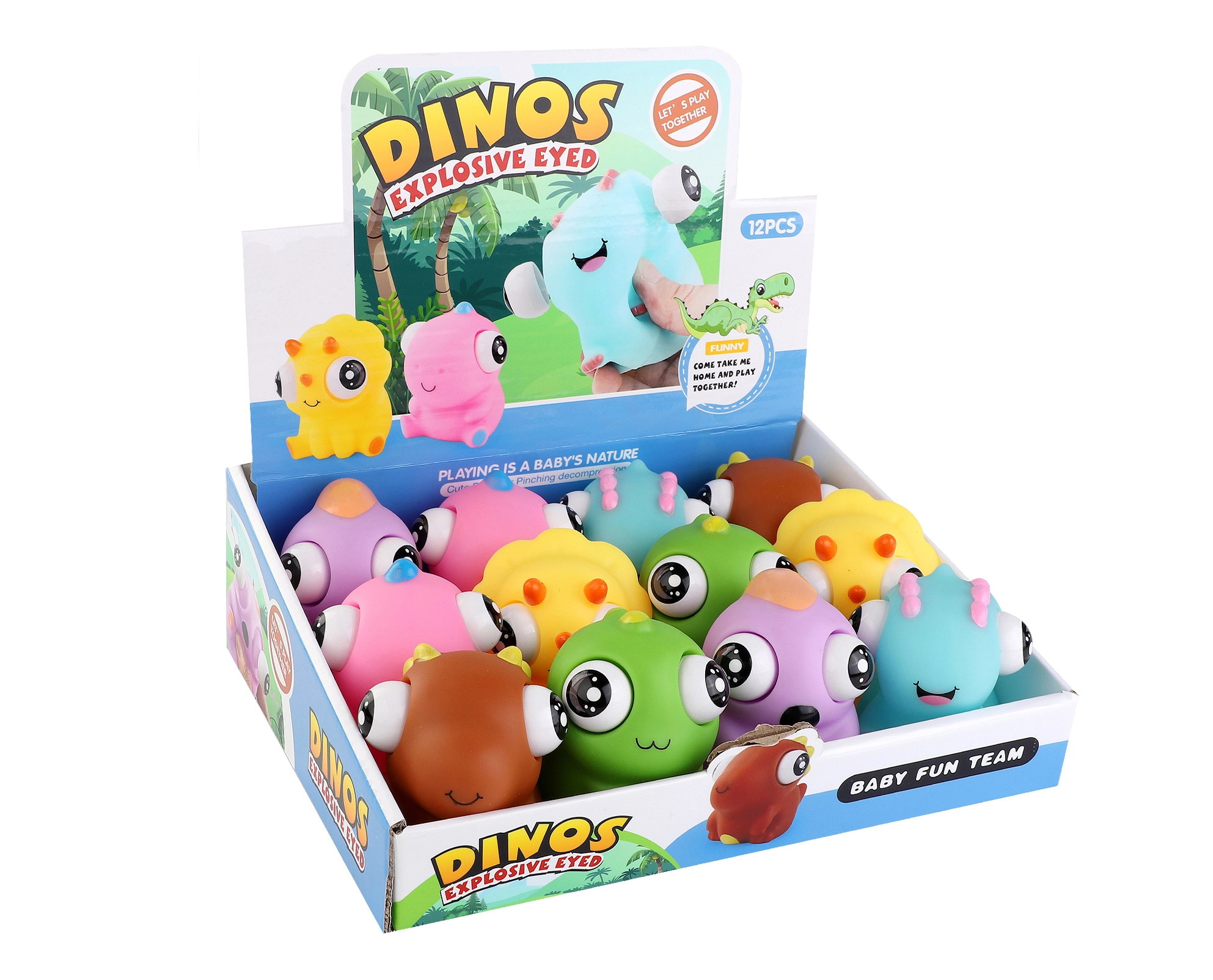 See dinosauruse mänguasi sobib suurepäraselt motoorika arendamiseks ja pakub palju tunde meelelahutust. Lapsed saavad mänguasja keha pigistada, mille peale silmad hüppavad välja, lisades kuhjaga naeru ja rõõmu.