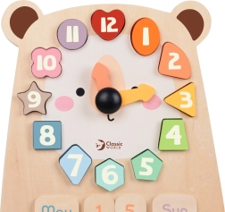 Brändi Classic World karukujuline puidust kell on mitmekülgne mänguasi, mis aitab lastel õppida aega, nädalapäevi, kuid ning värve ja kujundeid ära tundma. Eemaldatavate numbriklotside ja nimetuste abil saavad pisikesed harjutada käe-silma koordinatsiooni, loogilist mõtlemist ja peenmotoorikat.