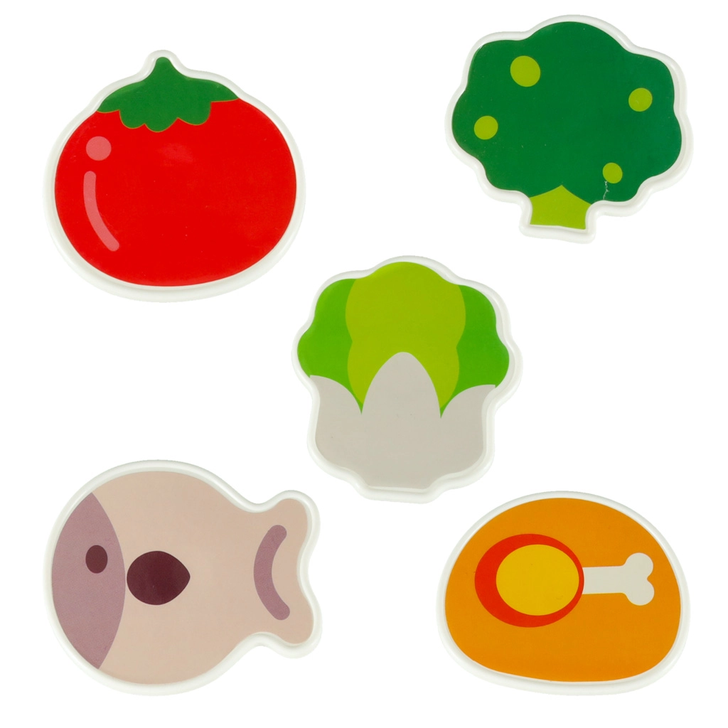 Lauakesel on ka 5 värvilist toidu kujuga magnetit, mis aitavad lastel erinevaid toiduaineid ära tunda.