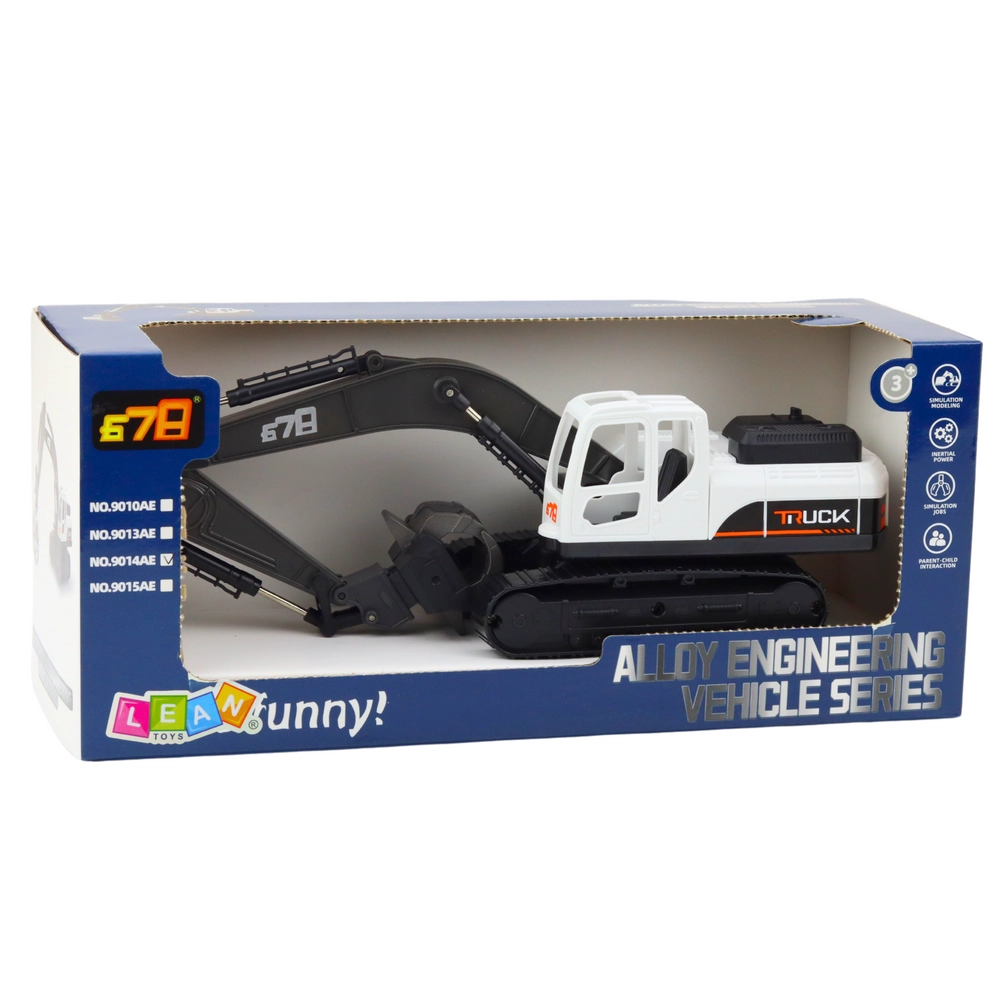 Roomikekskavaatoril on traditsioonilise koppa asemel haarats, liigendkäpp mitme liikuva punktiga ja 360° pöörlev alus. Roomikalusega šassii tagab stabiilsuse ja robustse välimuse nagu päris ehitusmasinatel. Mudel modernses must-valge-halli värvikombinatsioonis sobib suurepäraselt iga ehitusmänguasjade kollektsiooni.
