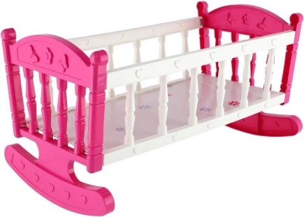 Roosa-valge häll õrnade kaunistustega on valmistatud vastupidavast plastist, võimaldades nukku kiigutada ja uinutada. Ideaalne fantaasia arendamiseks mängu käigus.