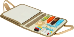 Õppimisvõimalused: Kohvri sees on vildist lehed õmblemiseks, harivad kaardid tähtede ja numbritega ning kustutatav tahvel loominguliseks tegevuseks.