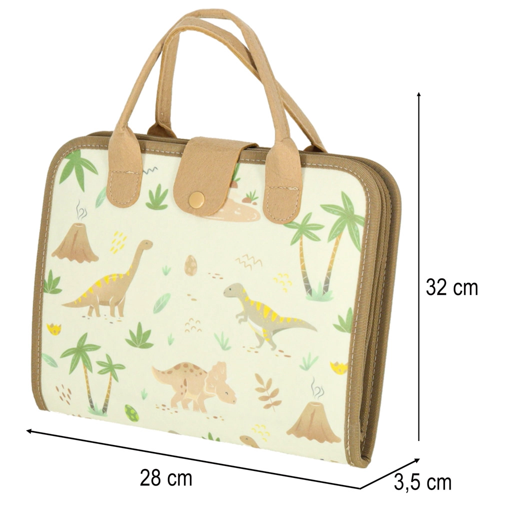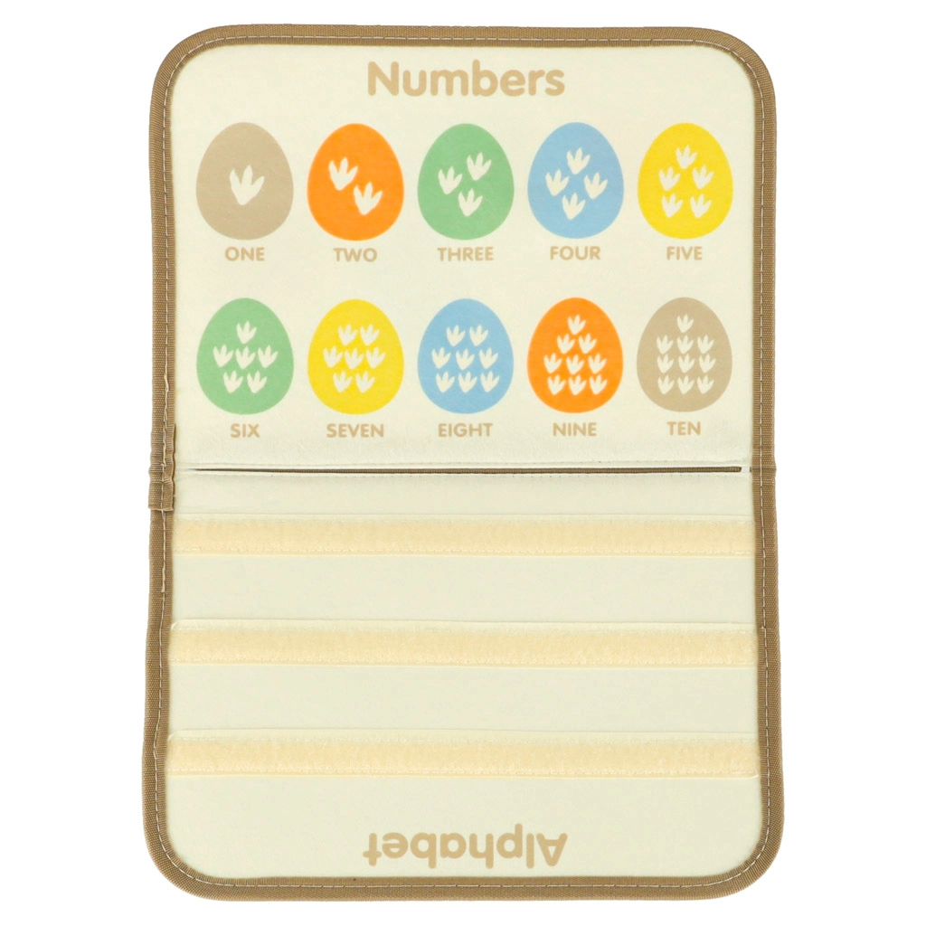 Kohvris on kustutatav tahvel ja harivad komponendid, mille abil lapsed saavad mängides teadmisi arendada. Kaasas on ka vildist dinosaurusfiguurid loominguliseks mänguks.
