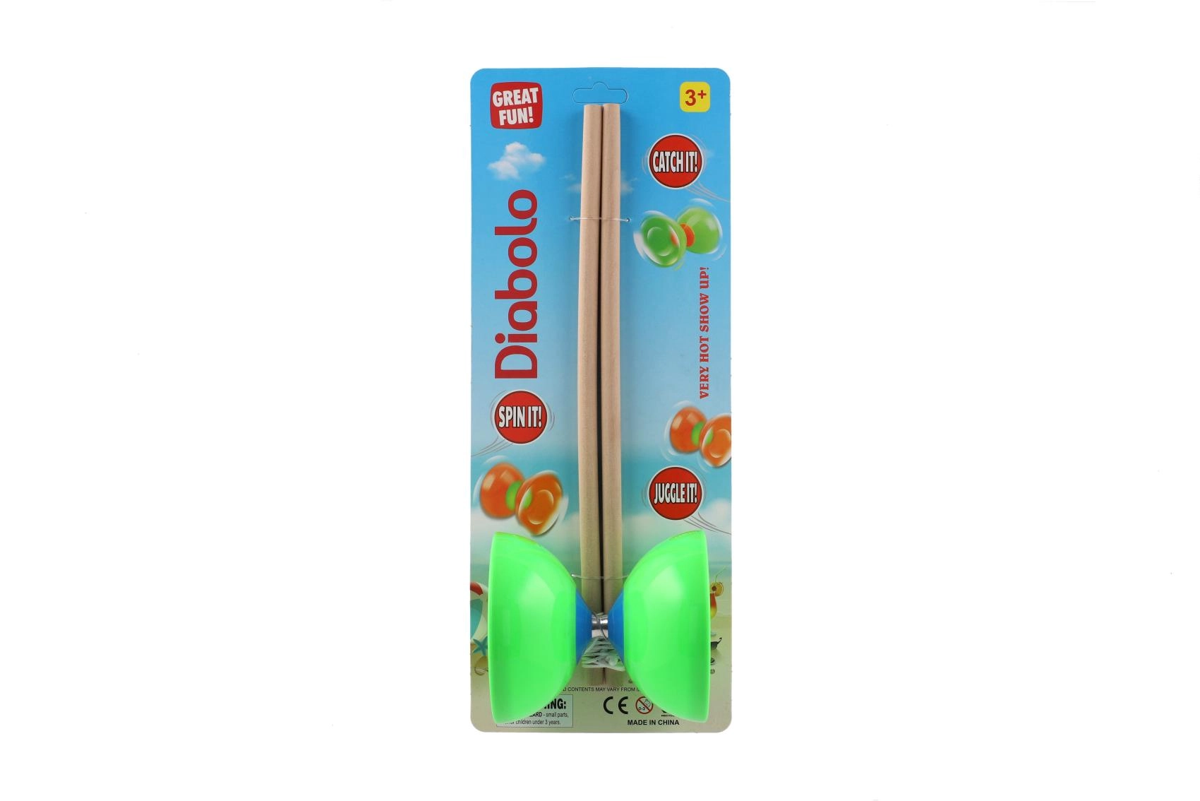 Suur diabolo vastupidavate plastkausside ja puidust keppidega toob rohkelt lõbu ning arendab motoorikat. Tänu laiadele kaussidele ja stabiilsele teljele on diabolo väga kindel, hoiab hästi kiirust ja annab vigu andeks – ideaalne õppimiseks ja trikkide arendamiseks.
