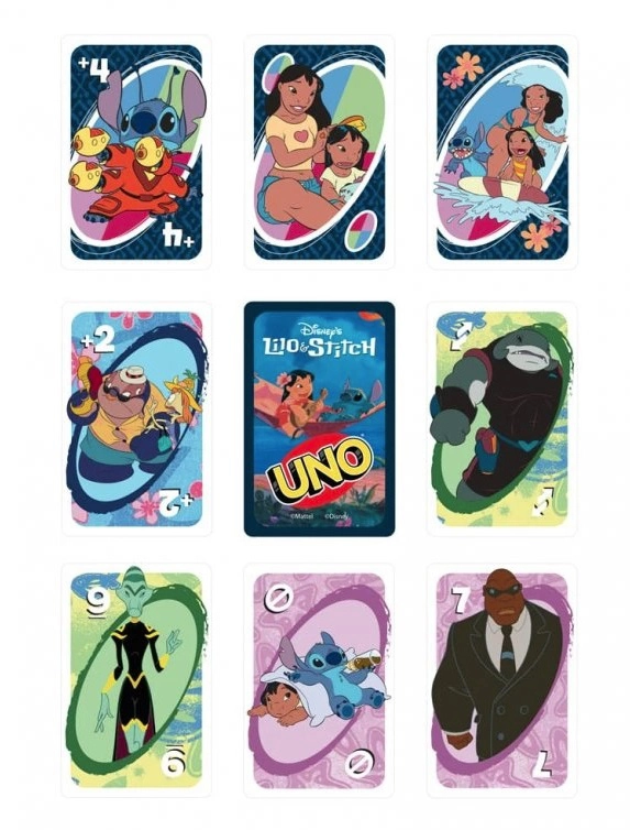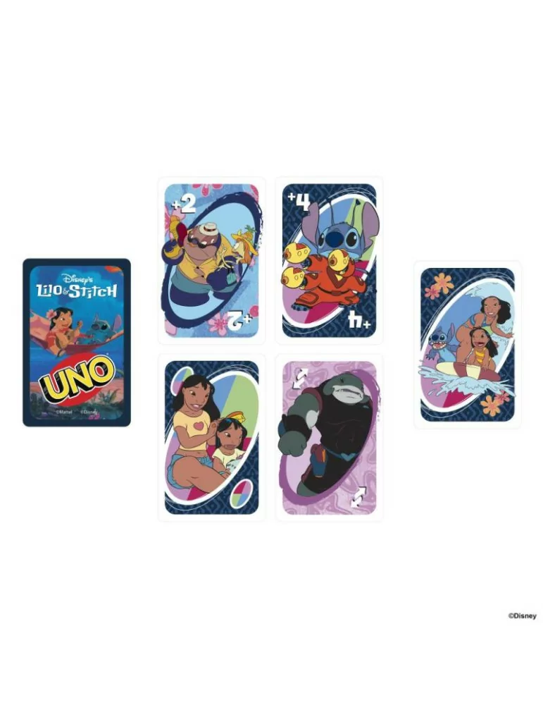 UNO Disney Lilo & Stitch toob kõik, mida UNO juures armastad – lihtsad reeglid, tempokas mäng ja taktikalised pöörded – lisaks Havai võlumaailm. Mängijad sobitavad värve ja numbreid, kasutavad tegevuskaarte ja püüavad võimalikult kiiresti kõigist kaartidest vabaneda. Kui sul jääb kätte viimane kaart, ära unusta hüüda UNO!