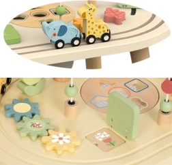 See armsake puidust tegevuslaud kõige pisematele on ideaalne värvide, kujundite ja helide maailma avastamiseks ning toetab tähtsate oskuste arengut. Täiuslik valik tundideks täis lõbu, kus teie väike avastaja kogeb iga puudutust eduna.