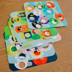 Värvilised plaadid numbrite, värvide, kujundite ja loomakestega laiendavad mängustsenaariume. Need toetavad varajast matemaatikaoskust ning värvide ja kujundite äratundmist.