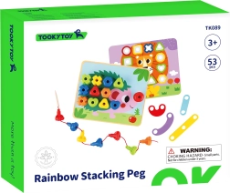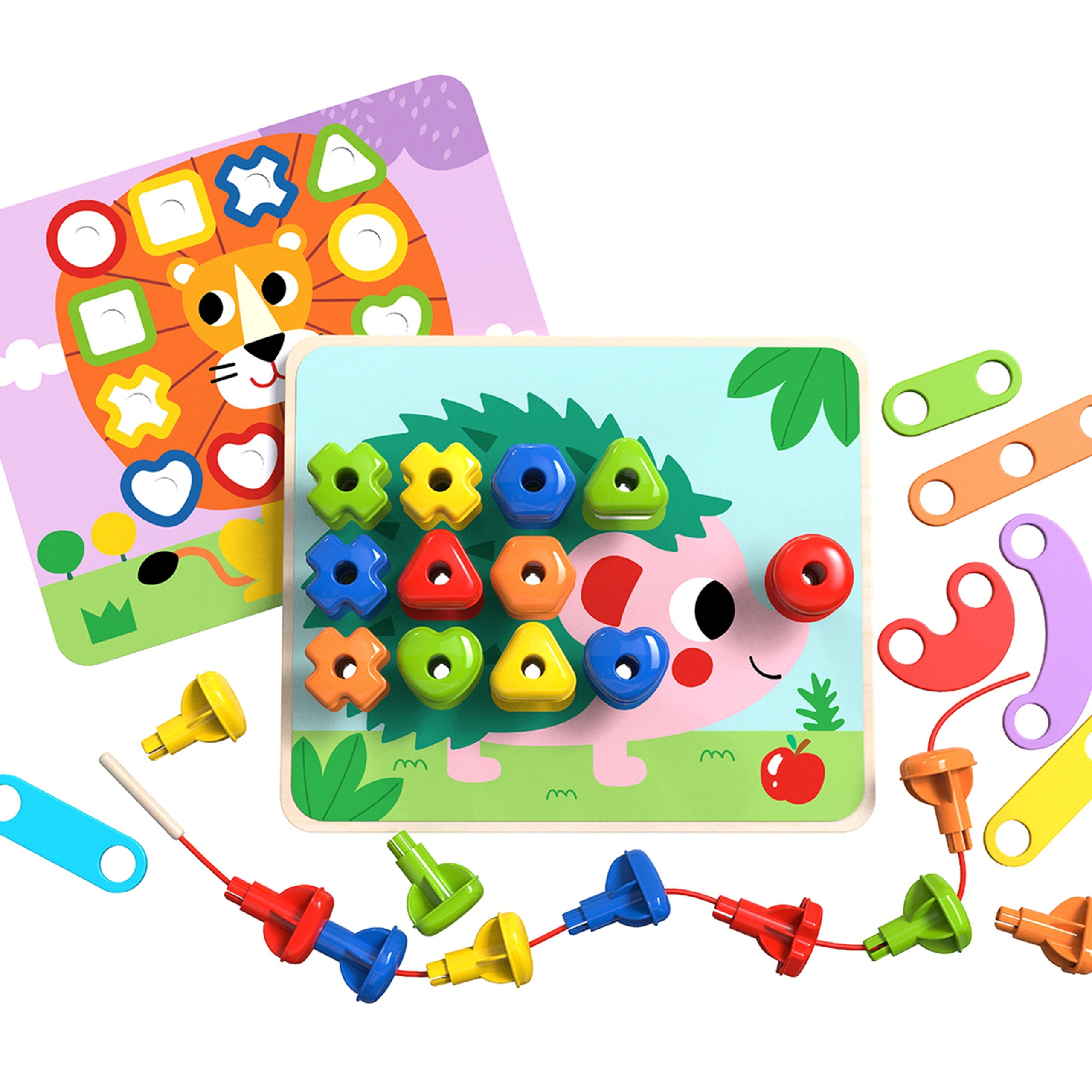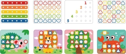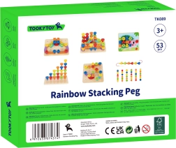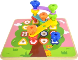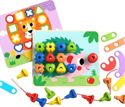 See mitmeotstarbeline komplekt võimaldab lastel harjutada erinevaid oskusi. Tänu värvilistele tappidele saab luua erinevaid kujundeid ja õppida värve eristama. Komplektis on 30 eri tappi, mis erinevad kuju ja värvi poolest, ning 8 kaarti erinevate sümbolitega. Lastele, kes armastavad meisterdada, on lisaks ka puidust nõel koos paelaga tappide lükkimiseks.