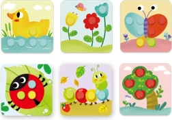 See pusle sisaldab 16 värvilist klotsi ja 6 loomateemalist tahvlit. Klotsid asetatakse kuju järgi, et pilt lõpule viia. Arendab laste nägemiskoordinatsiooni.