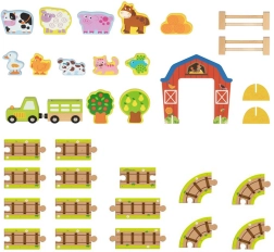 Tooky Toy puidust talukomplekt kohvris on suurepärane ja mahukas mängukomplekt, mis tagab tundide kaupa lõbu. Komplektis on väike traktor magnetkinnitusega haagisega ja veel mitmeid vahvaid osi.