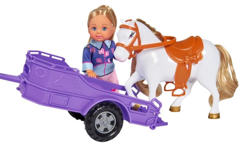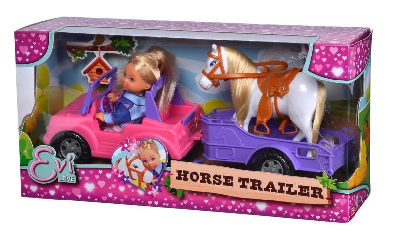 See komplekt pakub lastele kõik vajaliku ratsaseiklusteks. Nukk Evi Love juhib stiilset roosat kabrioletti, mille järel veereb lilla haagis hobuse mugavaks transpordiks. Tänu veeretavatele ratastele ja eemaldatavale haagisele on mäng sujuv ja lõbus nii kodus kui ka teel.