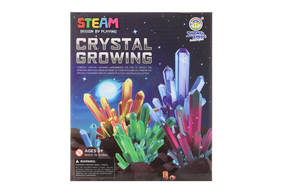 See komplekt sisaldab kõike vajalikku kristallide lihtsaks ja ohutuks valmistamiseks kodus. Lapsed õpivad keemia põhialuseid ja neid paelub kristallide kasv otse nende silme ees.