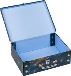 Kohvril on metallist nurgakaitsmed, mis võimaldavad ohutut kasutamist ilma kahjustuste riskita. See on ideaalne koolitarvete, mänguasjade või muude pisiesemete hoiustamiseks, mis vajavad turvalist kohta. Klassikaline pannaliga kinnitus ja metallist sang tagavad lihtsa ja mugava kandmise.