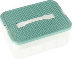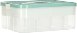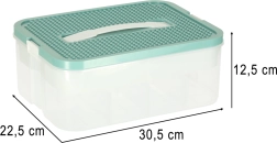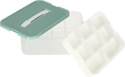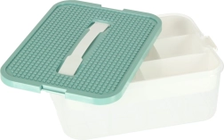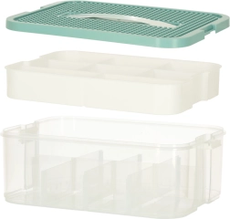 Korraldaja on valmistatud vastupidavast plastist ning sinakasroheline kaas lisab atraktiivse välimuse.