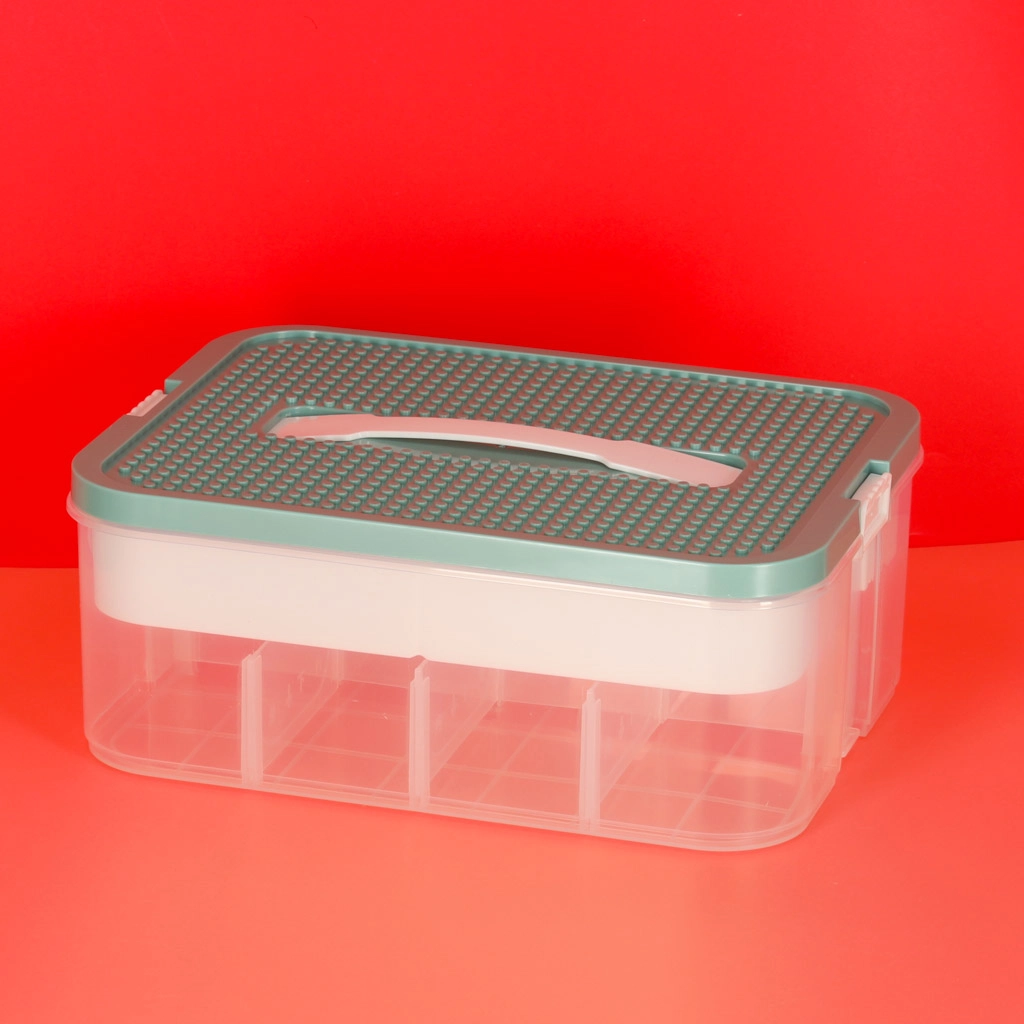 Praktiline korraldaja mänguasjade, pisiesemete või ehitusklotside jaoks, kaane ja kohandatavate lahtritega. Suurepärane abiline korra hoidmiseks kodus.