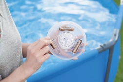 See modernne LED-lamp on lihtne kasutada: sisesta kolm AA-patareid (ei kuulu komplekti), aseta lamp veepinnale ja vajuta ülaosas olevat nuppu. Ei mingeid kaableid ega võrguühendust. See on loodud valgustama õrnalt vee pinda laiusega 2,43 m ja sügavusega 1,52 m. Lülitub automaatselt välja pärast ühetunnist tegevusetust.