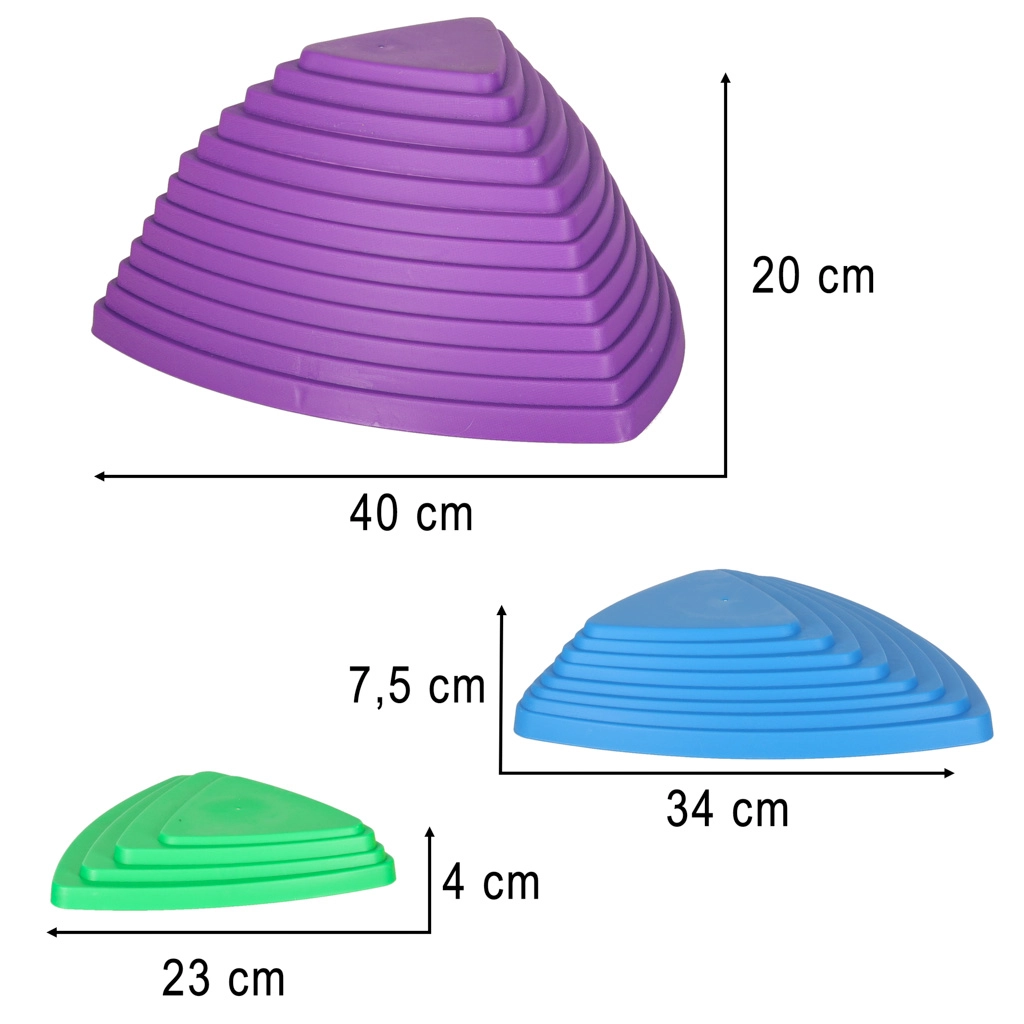 Komplekt sisaldab elemente, millest saab luua dünaamilise, värvilise sensoorrada. Kive saab paigutada erinevateks radadeks alates lihtsatest kuni keerukate ringideni, toetades loovust ja avastamist. Tasakaalukivid muudavad “põrand on laava” mängu lõbusaks ja harivaks kogemuseks.
