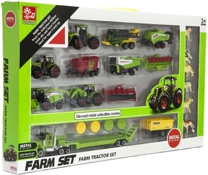 Komplektis on erinevat tüüpi sõidukeid, sh traktorid ja haagised. Tänu realistlikule välimusele ja liikuvatele osadele pakub see mänguasi tunde põnevat tegevust. Karp mõõtmetega 53×31×5 cm hoiab kõik osad kenasti korrastatult.